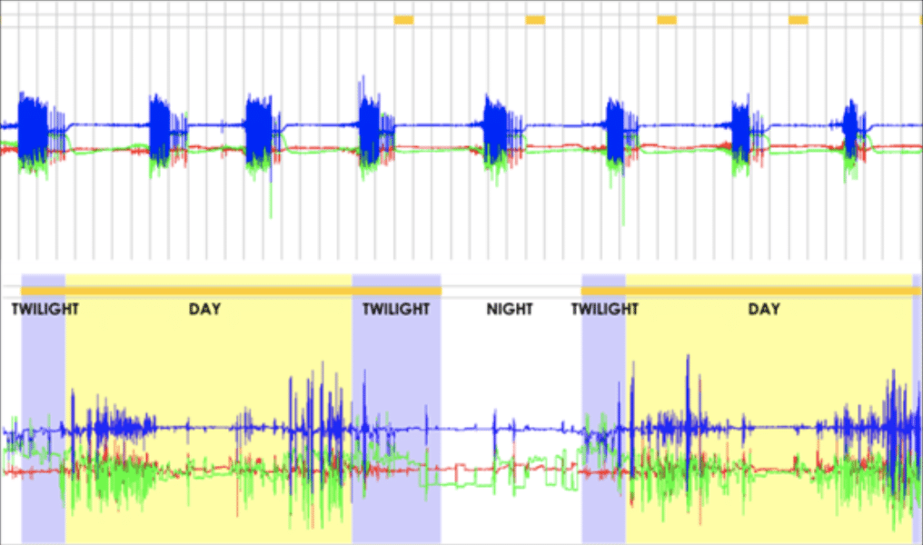 While frequent GPS locations every 5 minutes provide a detailed picture of the birds’ movements and habitat use, an intensive programming of the accelerometer (ACC) allows identification of the most important behaviors. The ACC is set at 16.7 Hz at 900 seconds interval during most of the year, sufficient to establish time budget and quantify most activities. During the mating season, however, we increase the ACC settings to 16.7 Hz at 10 seconds interval to get all details of the male display and the mating system of the species.