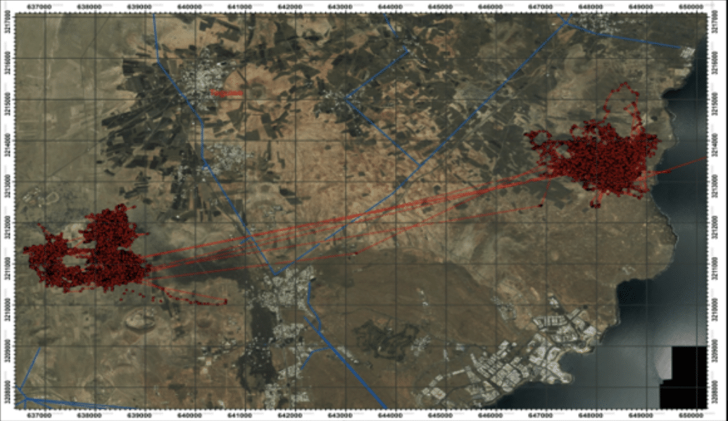 Over 40 houbaras have been fitted with backpack-mounted GSM/GPRS e-obs loggers (Bird Solar UMTS 42g in males, 25g model in females). Tracking marked birds has revealed that houbaras migrate between breeding and non-breeding areas, crossing roads and powerlines. Assessing the risks that these infrastructures represent for houbaras is indeed one of the main objectives of the study.
